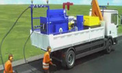 適于不需要銑刨機和攤鋪機的修復(fù)路面,只用骨料和乳化瀝青;兩種材料(骨料和瀝青)單獨存放,直到應(yīng)用前最后一刻混合;無需每天單獨購買少量瀝青混合料,骨料和瀝青都單獨存放在工地附近。
